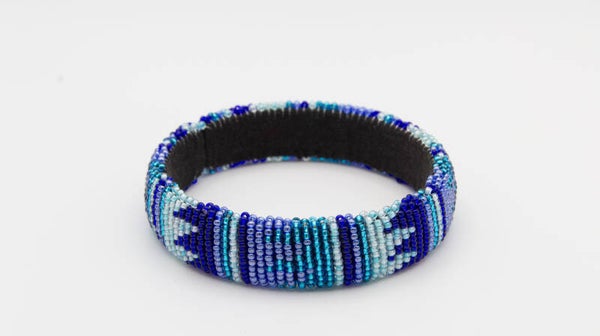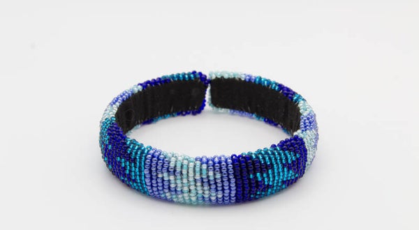 BillionHers Traditional African Beaded Bangles (Dark Blue, Aqua and Light Blue)