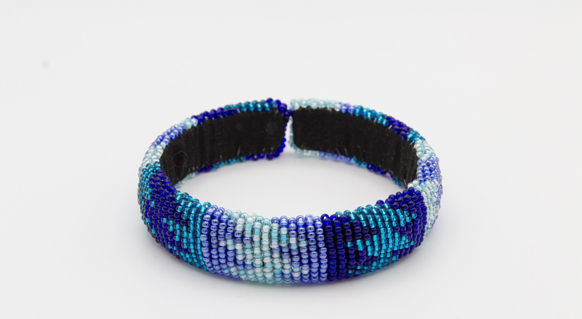 Made from high-quality opaque and glass beads, hand-beaded around flexible recycled material.