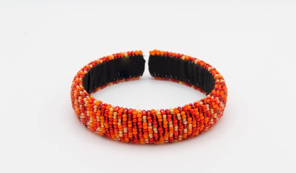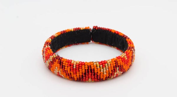 BillionHers Traditional African Beaded Bangles (Orange, Red and Satsuma)