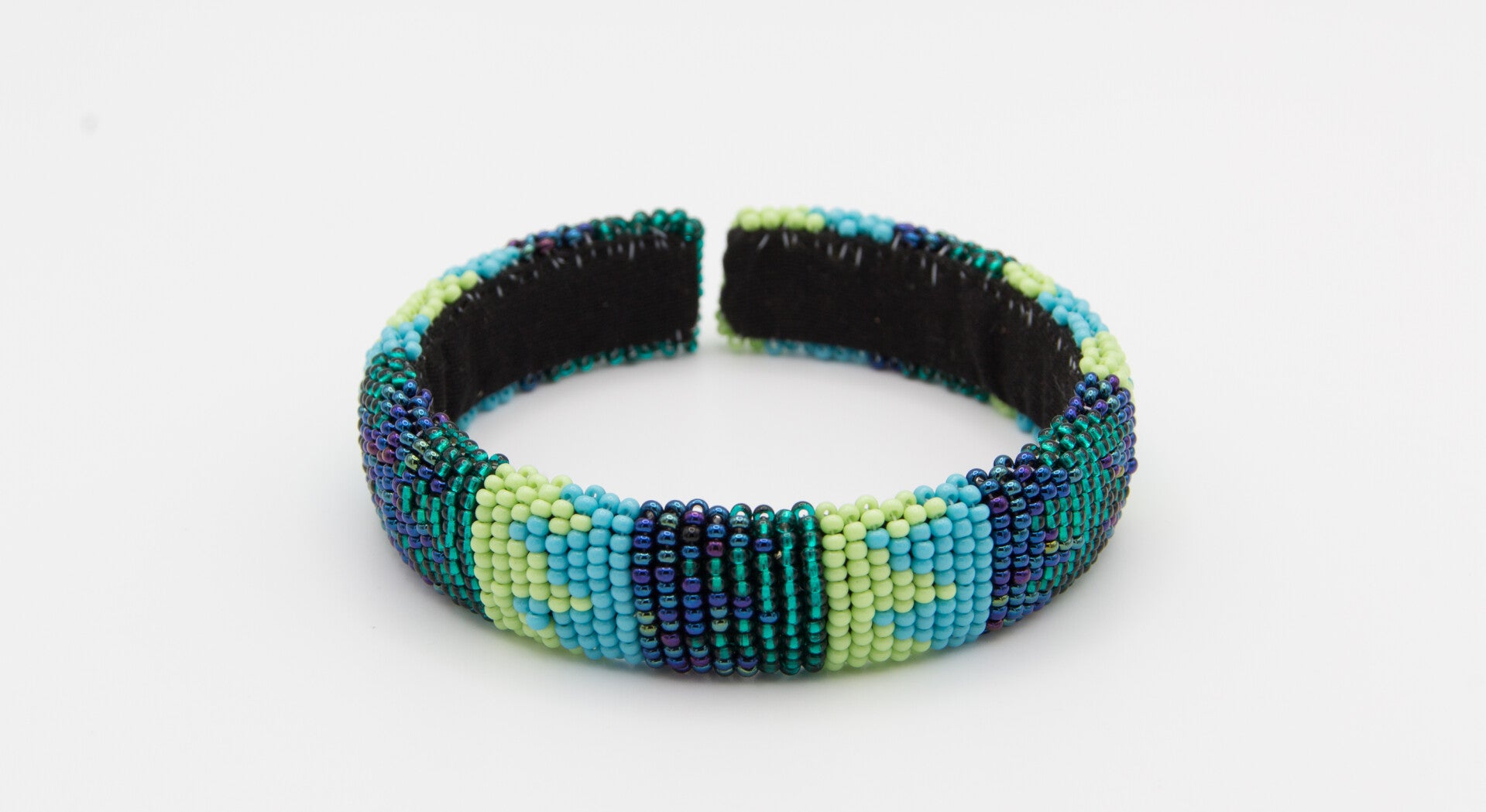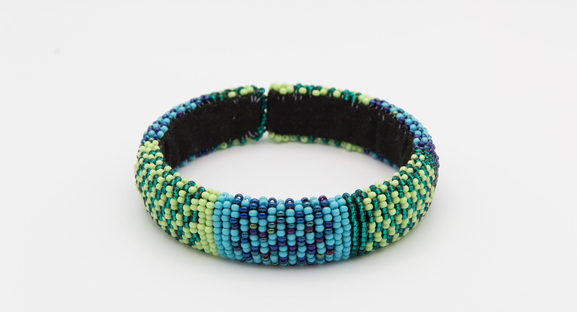 Made from high-quality opaque and glass beads, hand-beaded around flexible recycled material.
