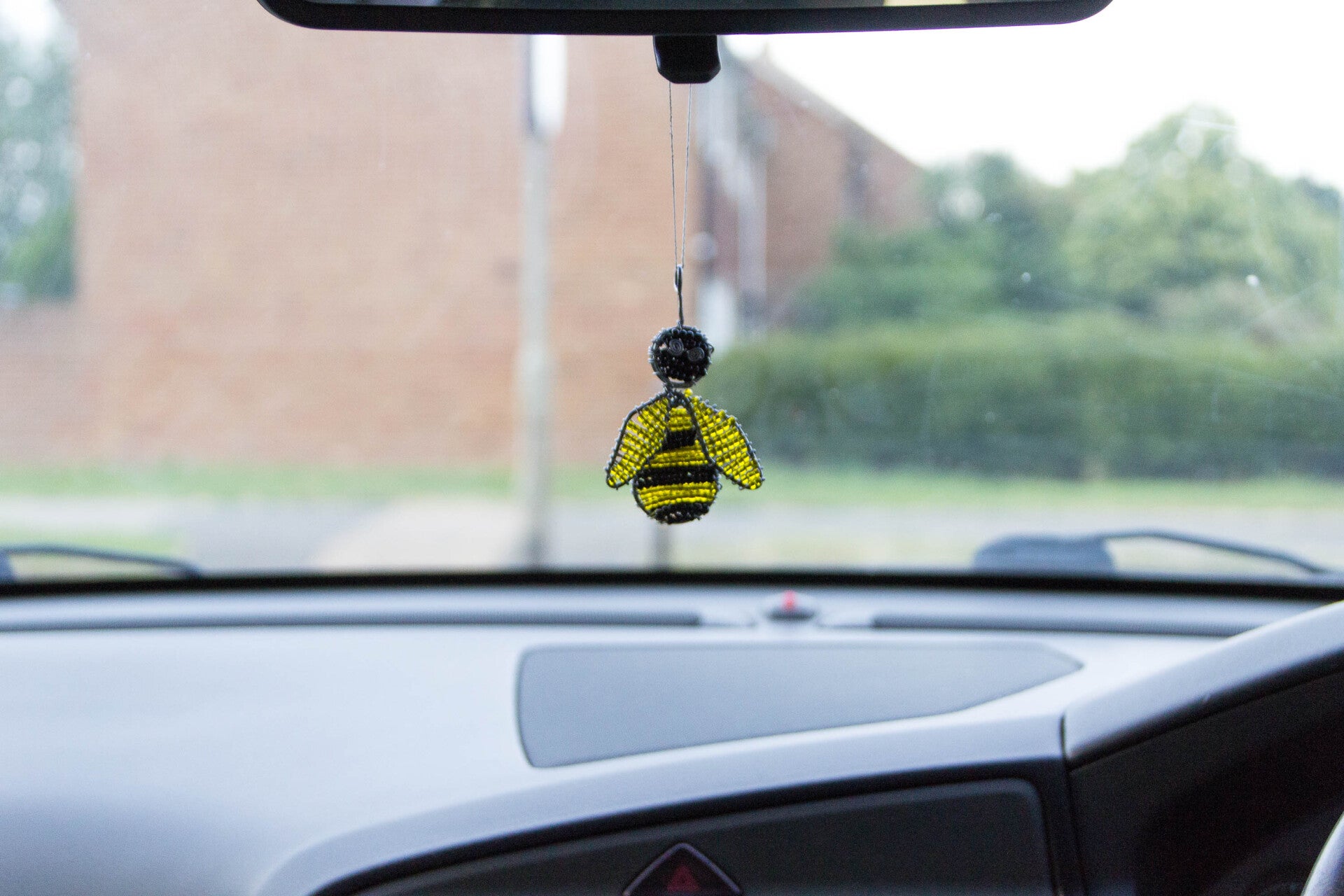 Colourful handmade African bee keyring, perfect as a school bag charm, car mirror ornament, or sensory aide.