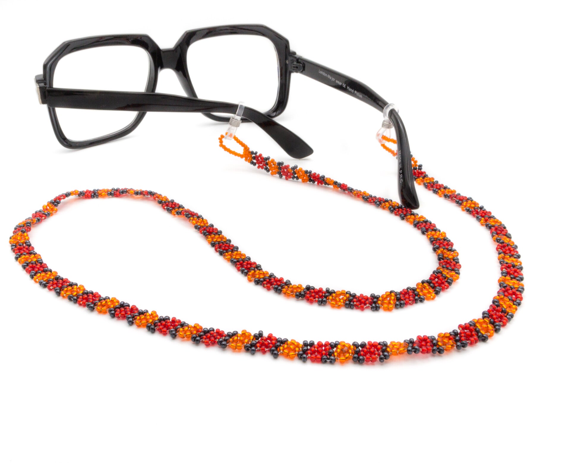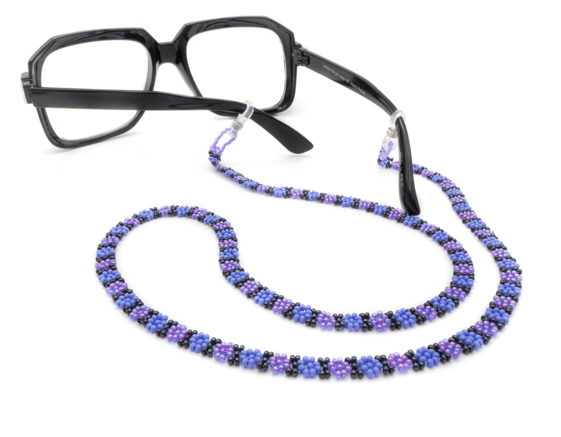 Stylish beaded glasses chain with a colourful daisy pattern to keep your sunglasses secure and easy to reach.